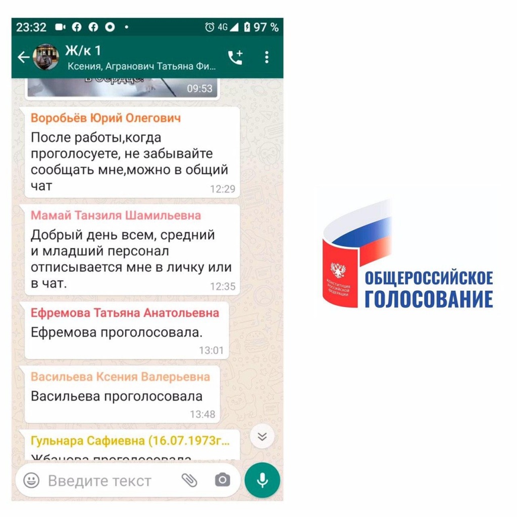 Заведующий женской консультацией томского роддома №1 Юрий Воробьёв открыто принуждает сотрудников принять участие в голосовании, а после отписаться ему в WhatsApp, пишет тг-канал Tomskpolit.