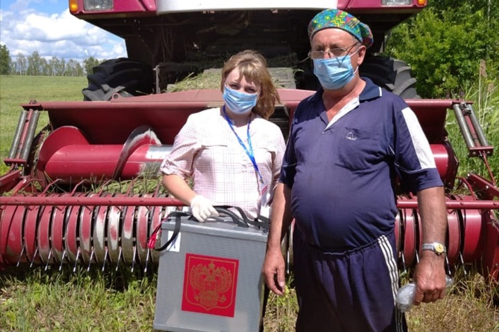 17:30 В Омской области, как утверждает «Тара-TV», «проголосовать можно прямо в поле, как это сделал механизатор ОПХ имени Фрунзе Яков Владимирович Тиде».
