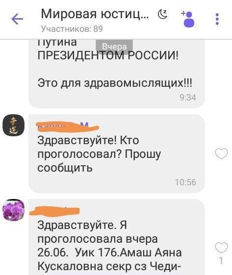 13:58 Тувинский «8 канал» опубликовал в своем телеграм-канале скриншоты из чата «мировая юстиция» в Viber, участники которого отчитываются о голосовании.