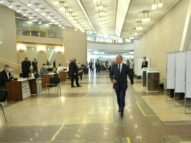 Президент России Владимир Путин пришел 1 июля на избирательный участок, чтобы отдать свой голос в рамках общероссийского голосования по поправкам в Конституцию.