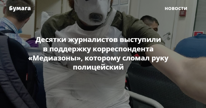 Десятки российских журналистов выступили в поддержку корреспондента «Медиазоны» Давида Френкеля, которому на избирательном участке в Петербурге сломал руку полицейский.