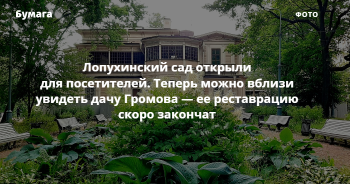 Здание дачи Громова в Петроградском районе планируют отреставрировать к октябрю 2020 года. Об этом «Бумаге» сообщила куратор проекта «Дача Громова. Реинкарнация» Юлия Журавлева.