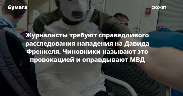 В поддержку Френкеля выступили десятки журналистов, они требуют справедливого и непредвзятого расследования нападения. Следственный комитет начал проверку. «Бумага» рассказывает, как развивалась ситуация.