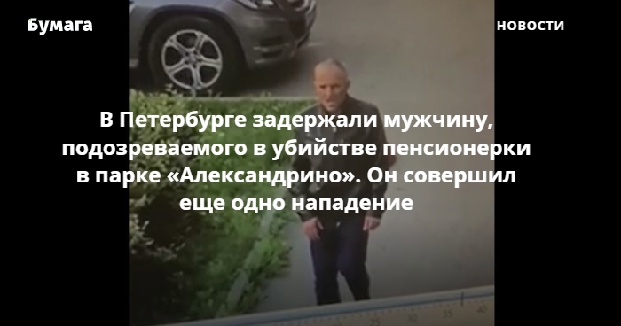 По версии полиции, 23 июня этот же мужчина напал на 75-летнюю женщину в парке «Александрино». Подозреваемый нанес ей несколько ударов ножом в живот, пострадавшая скончалась в больнице от полученных ран. Сейчас задержанный доставлен в следственные органы.