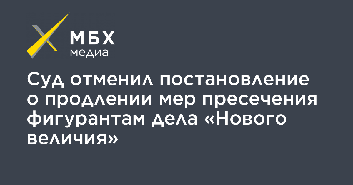 Суд отменил постановление о продлении мер пресечения фигурантам дела «Нового величия»