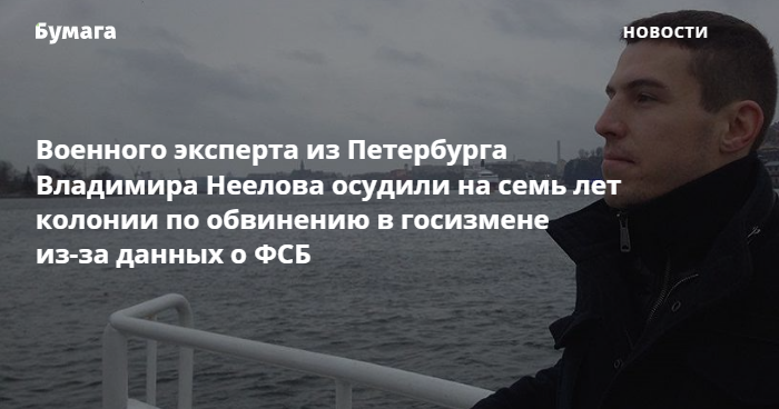 Санкт-Петербургский городской суд приговорил военного эксперта Владимира Неелова к семи годам колонии строгого режима по обвинению в государственной измене (ст. 275 УК). Об этом сообщает объединенная пресс-служба судов Петербурга.