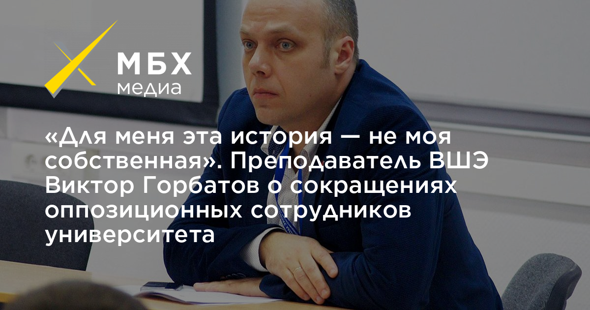 Руководство Высшей школы экономики планирует сократить 22 ставки преподавателей на факультете гуманитарных наук. Часть сотрудников могут уволить из-за их “неблагонадежности”. Преподаватель Школы философии ВШЭ Виктор Горбатов рассказал «МБХ медиа», когда началось давление со стороны руководства, в чем настоящие причины возможного увольнения сотрудников и что он сам собирается делать дальше.