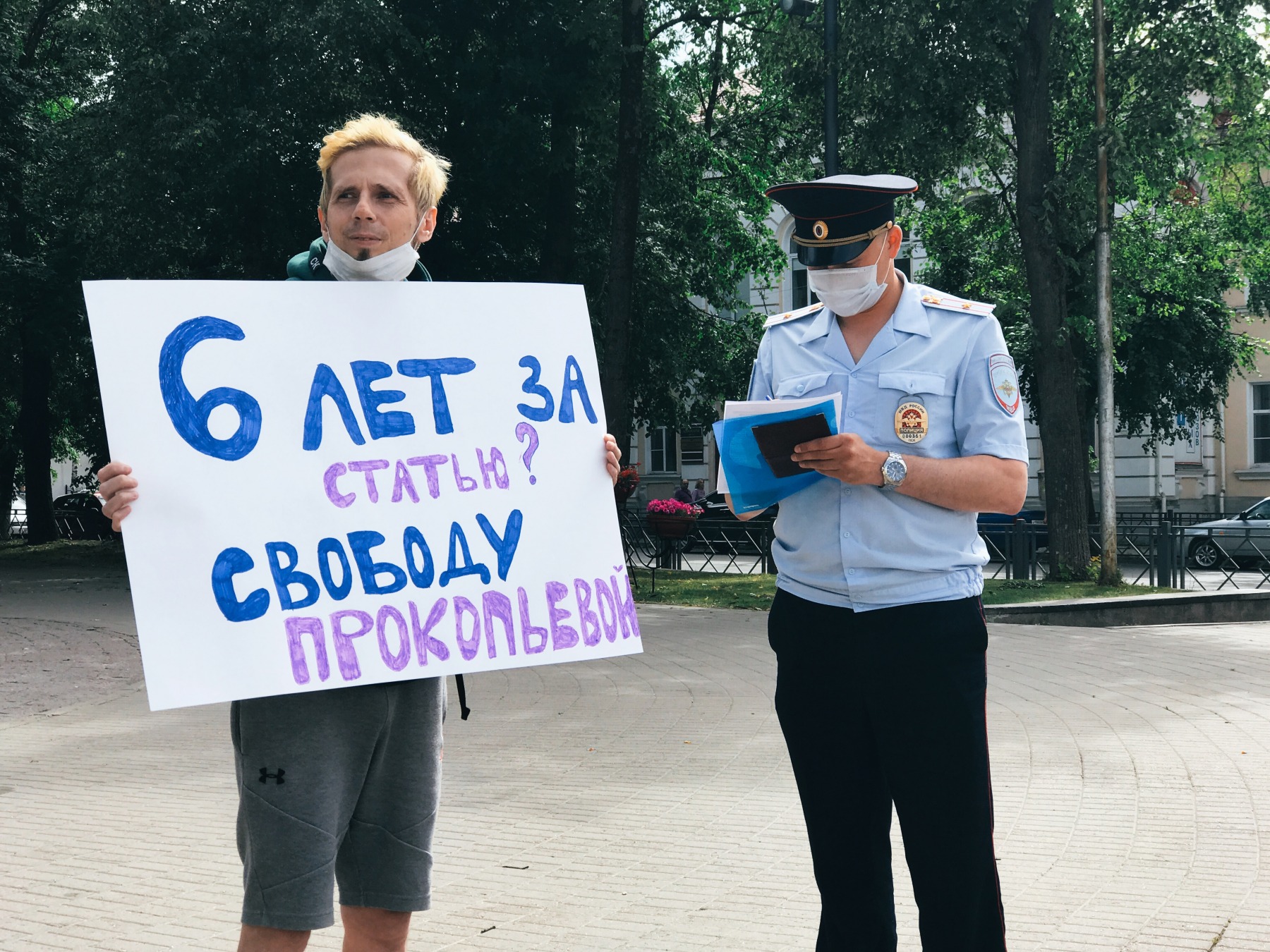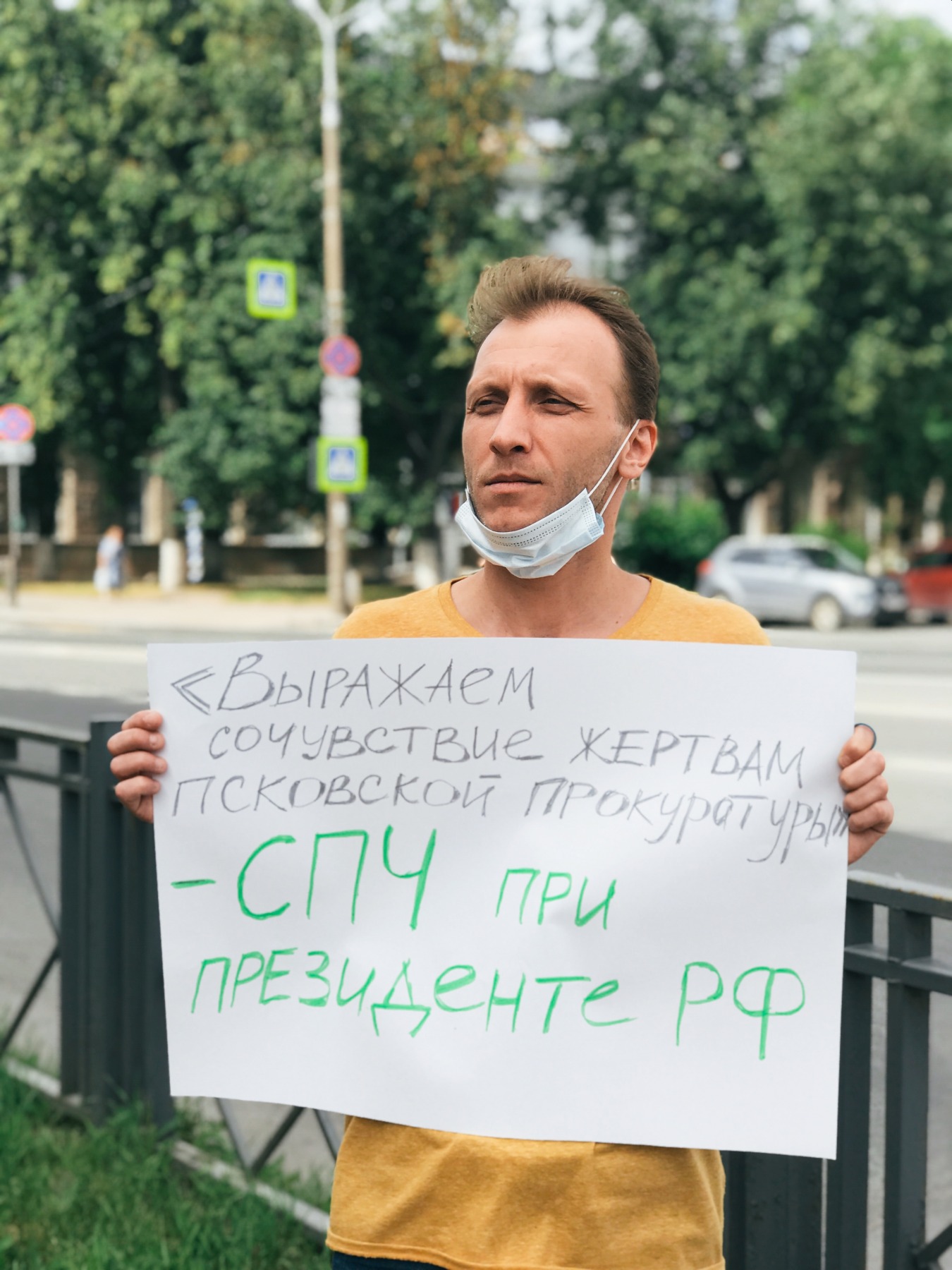 Отметим, сегодня врио начальника отдела по охране общественного порядка майор полиции Фомичев выдал предостережение главному редактору «Псковской губернии» Денису Камалягину в связи с его якобы призывами участвовать в одиночных пикетах в поддержку Светланы Прокопьевой.