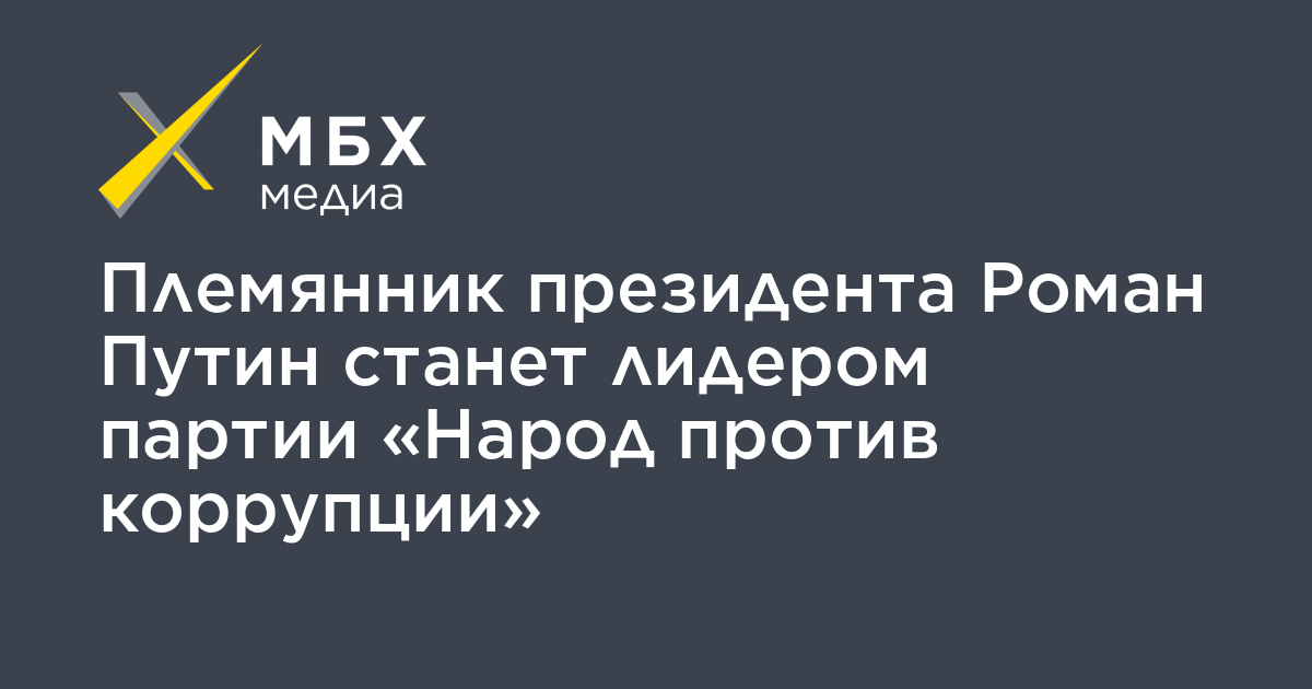 Двоюродный племянник президента Роман Путин станет лидером партии «Народ против коррупции». Об этом сообщается на сайте организации. Уточняется, что Путин вступил в партию 21 июня. Его кандидатура рекомендована руководством партии для назначения на должность председателя. Решение назначить Путина лидером партии будет принято 5 июля на съезде, место проведения которого не уточняется.