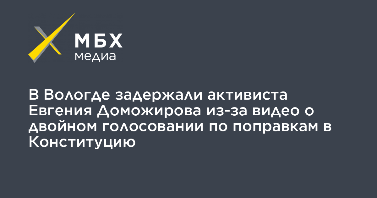 В Вологде задержали активиста и экс-депутата законодательного собрания города Евгения Доможирова из-за видео о двойном голосовании по поправкам в Конституцию. Об этом Доможиров сообщил «МБХ медиа».