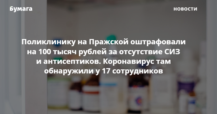 Поликлинику на Пражской оштрафовали на 100 тысяч рублей за отсутствие СИЗ и антисептиков