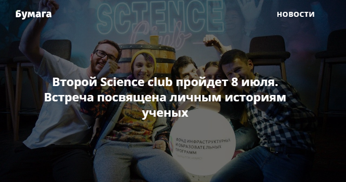 В среду, 8 июля, Фонд инфраструктурных и образовательных программ (группа РОСНАНО) и «Бумага» проведут второй Science Сlub Online — встречу с учеными в онлайн-баре. На этот раз тема вечера — личные истории.