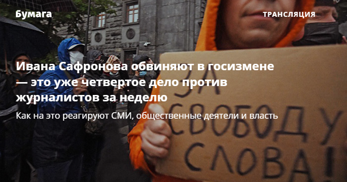 Ивана Сафронова обвиняют в госизмене — это уже четвертое дело против журналистов за неделю. Как на это реагируют СМИ, общественные деятели и власть