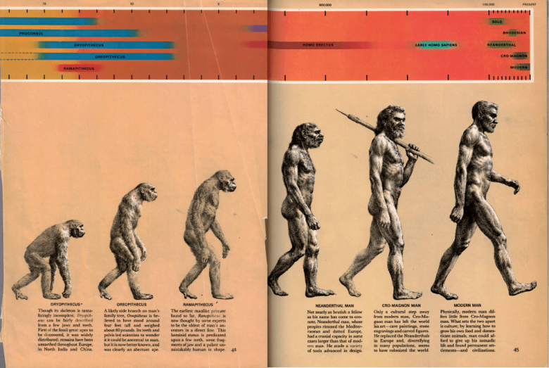Марш прогресса: знаменитая иллюстрация Рудольфа Цаллингера была впервые опубликована в 1965 году. К сожалению, один из самых узнаваемых научных мемов нашего времени создает совершенно ложное представление об эволюции как прямолинейном процессе "вставания с колен", устремленном к высшей цели — современному человеку