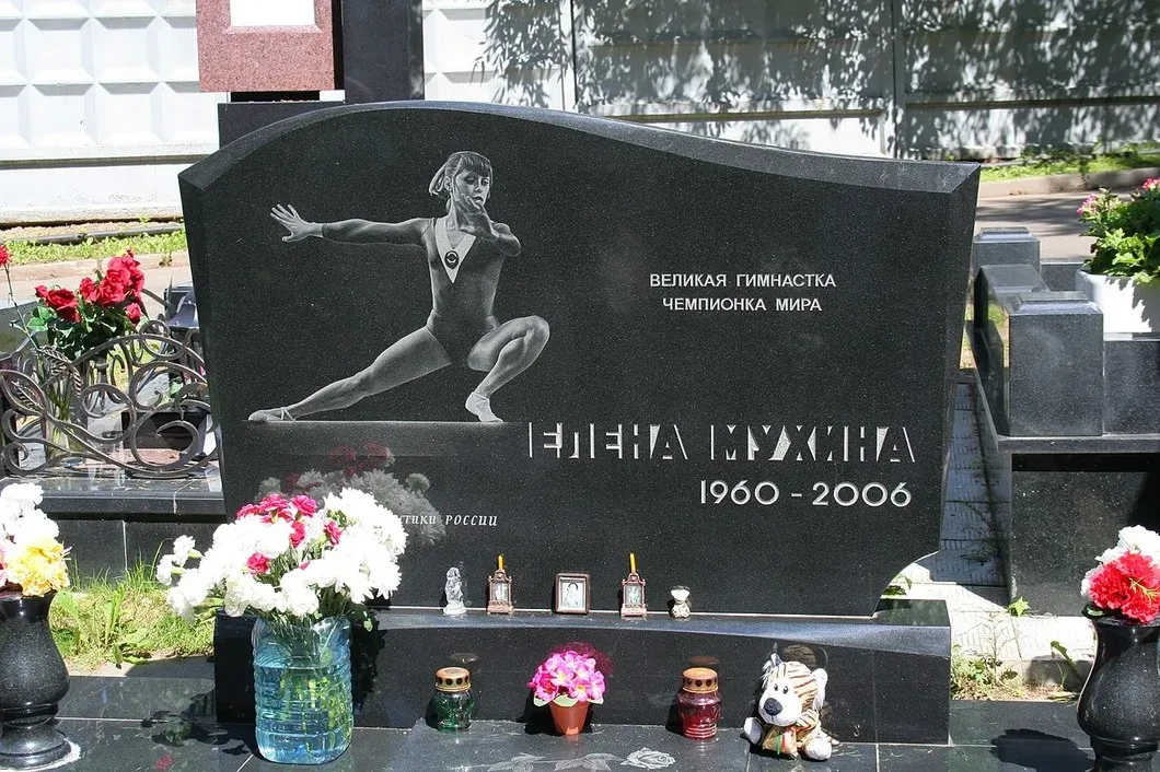 Елены Вячеславовны не стало в декабре 2006 года. На памятнике рядом с изображением выполняющей упражнение на бревне девчушки написаны два слова: «великая гимнастка». И это действительно так. Хотя ее карьера оборвалась в 20 лет, и поучаствовать в Олимпийских играх Мухина так и не успела…
