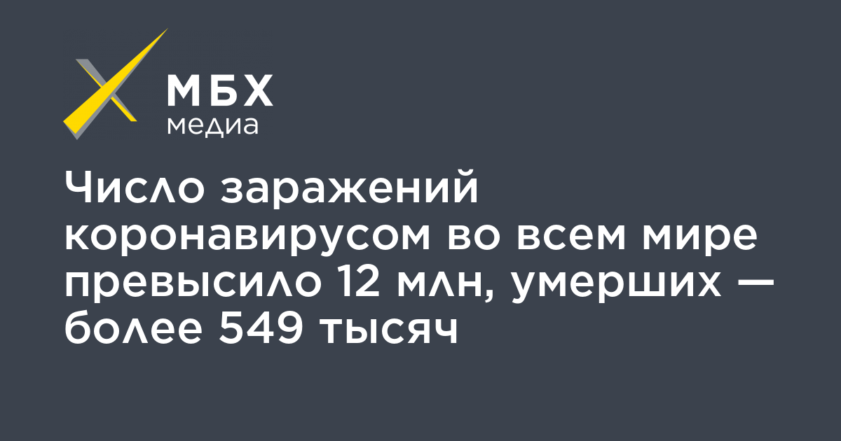 Число заражений COVID-19 во всем мире с начала пандемии превысило 12 млн случаев. По данным на 8:00 (мск), всего зафиксировано 12 млн 012 тысяч заражений, следует из данных Университета Джона Хопкинса.