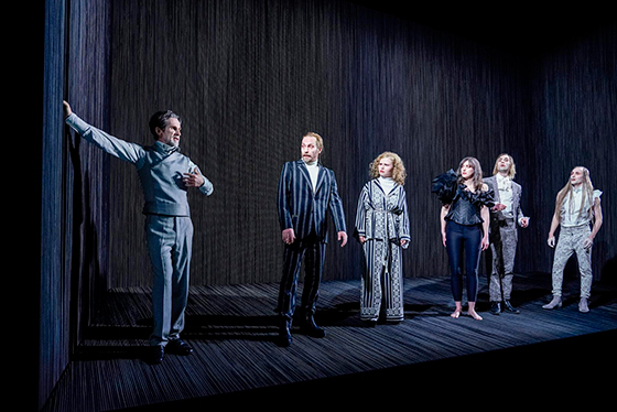 Пьеса Мольера разыграна вне примет конкретного времени или места. Буквально «без всего» — в спектакле нет никакого предметного мира, героям не дано ни присесть, ни опереться на что-либо, они все время на ногах, все время в словах, эти подвижные и разговорчивые персонажи мольеровской комедии, помещенные в неглубокую, выдвинутую на авансцену декорацию-коробочку. Стены и потолок ее собраны из натянутых резиновых «прутьев», так, что нет ни дверей, ни окон, и появиться герои могут в любом месте, буквально выскочив из стены. В центре спектакля, как и положено по пьесе, — Альцест Ульриха Маттеса, одного из самых известных современных немецких актеров, мягкого и сдержанного резонера, мастера аристократического голосоведения. С «Мизантропом» актеры справляются меньше чем за два часа, вроде бы ничего не упуская, но ни на чем не задерживаясь, радостно отыскивая в тексте острые места, но не укалываясь и не травмируя публику. Вскоре сцена и зал расстаются, довольные друг другом. Наверное, «Мизантроп» — все-таки не один из десяти самых примечательных, а всего лишь один из шести по гендерной квоте.