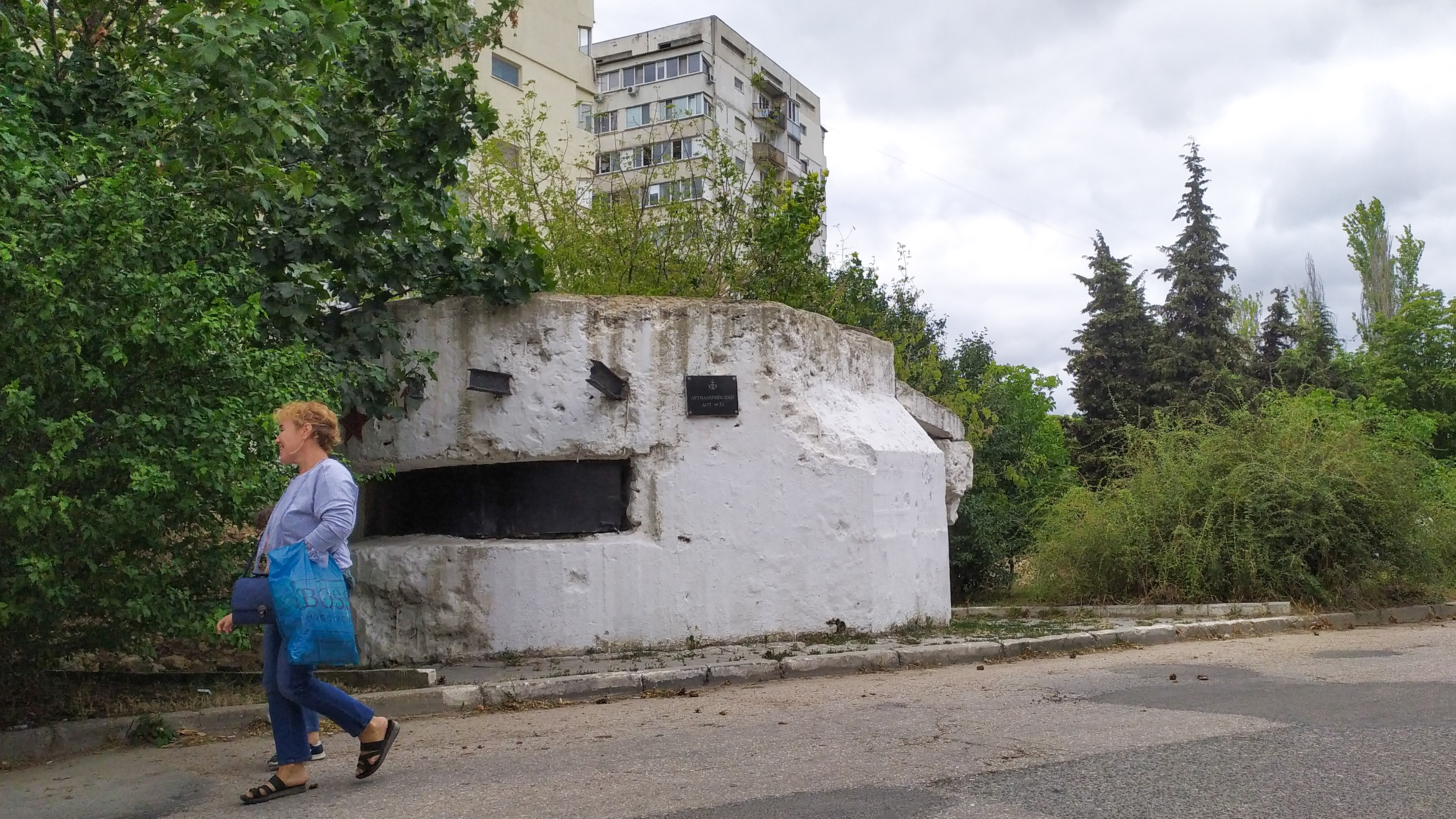 Вообще севастопольцы к подобному «украшению двора» давно привыкли и внимания на него не обращают. До конца 1970-х в этом месте был пустырь, расположенные рядом дома построены в 1980 году. А в 1941-м линия обороны располагалась далеко за городом.