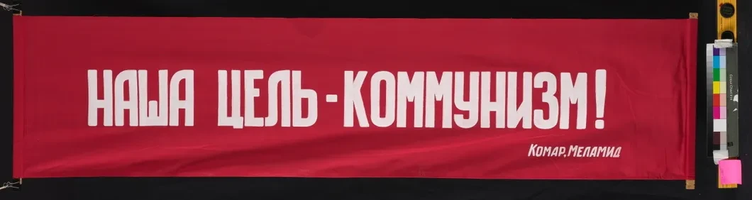 Выставлен и знаменитый двойной автопортрет Комара и Меламида с надписью «соц-art», профили на красном фоне напоминают о вождях марксизма-ленинизма (один из художников, впрочем, может напомнить Троцкого, вот и диверсия!).