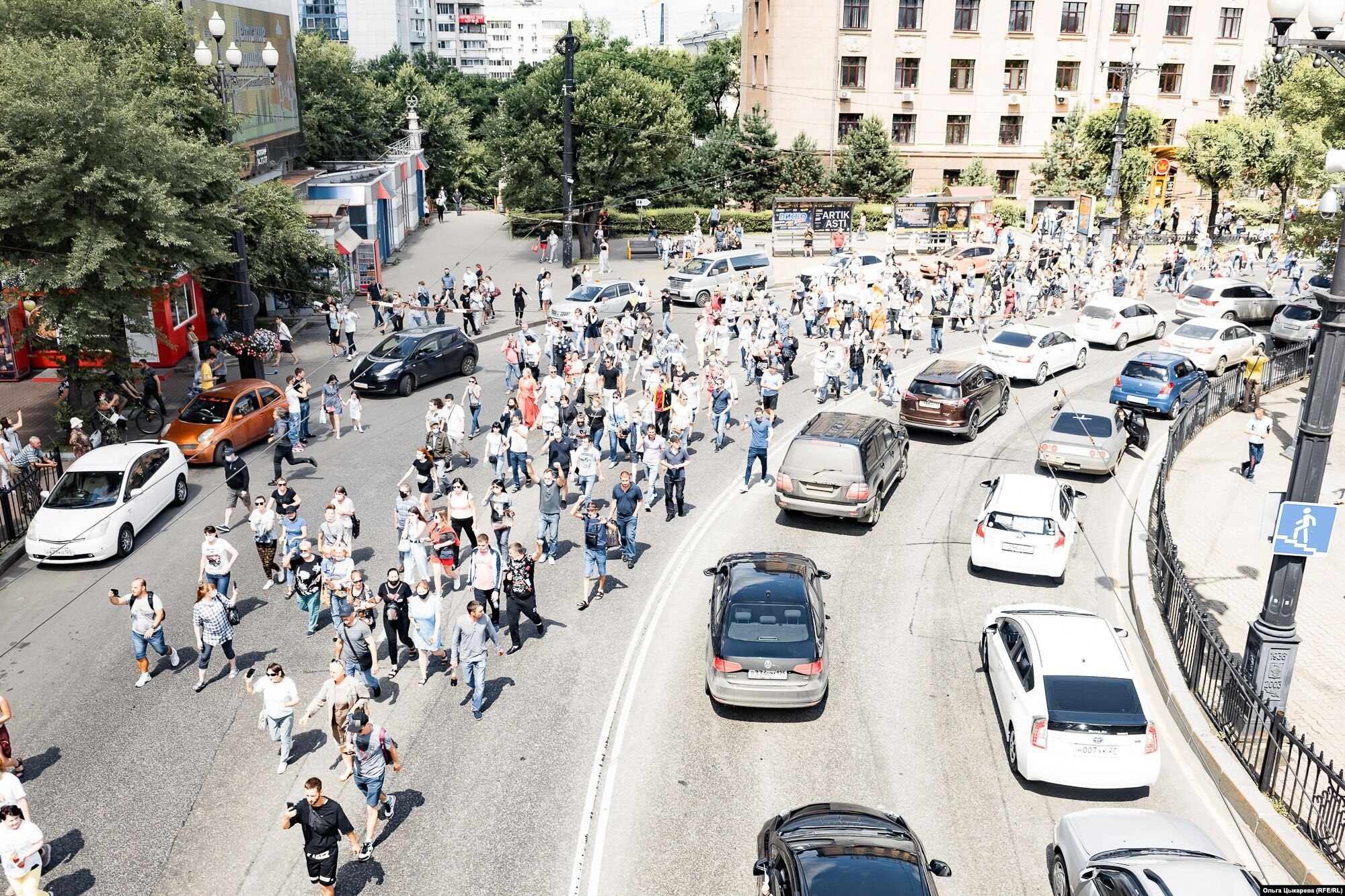 После задержания губернатора Хабаровского края Сергея Фургала хабаровчане собрались на несогласованный митинг. Толпы протестующих против ареста главы региона перекрыли все центральные улицы города.