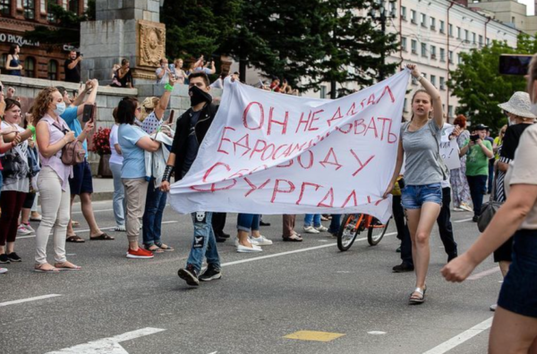 11 июля в Хабаровском крае прошла самая масштабная акция в истории региона: десятки тысяч людей вышли на стихийный митинг в поддержку арестованного губернатора Сергея Фургала, автомобилисты выстроили своими машинами фразу «Я/Мы Фургал», протестующих поддержал зампред правительства, а полиция не препятствовала горожанам, хотя те перекрыли центр города.