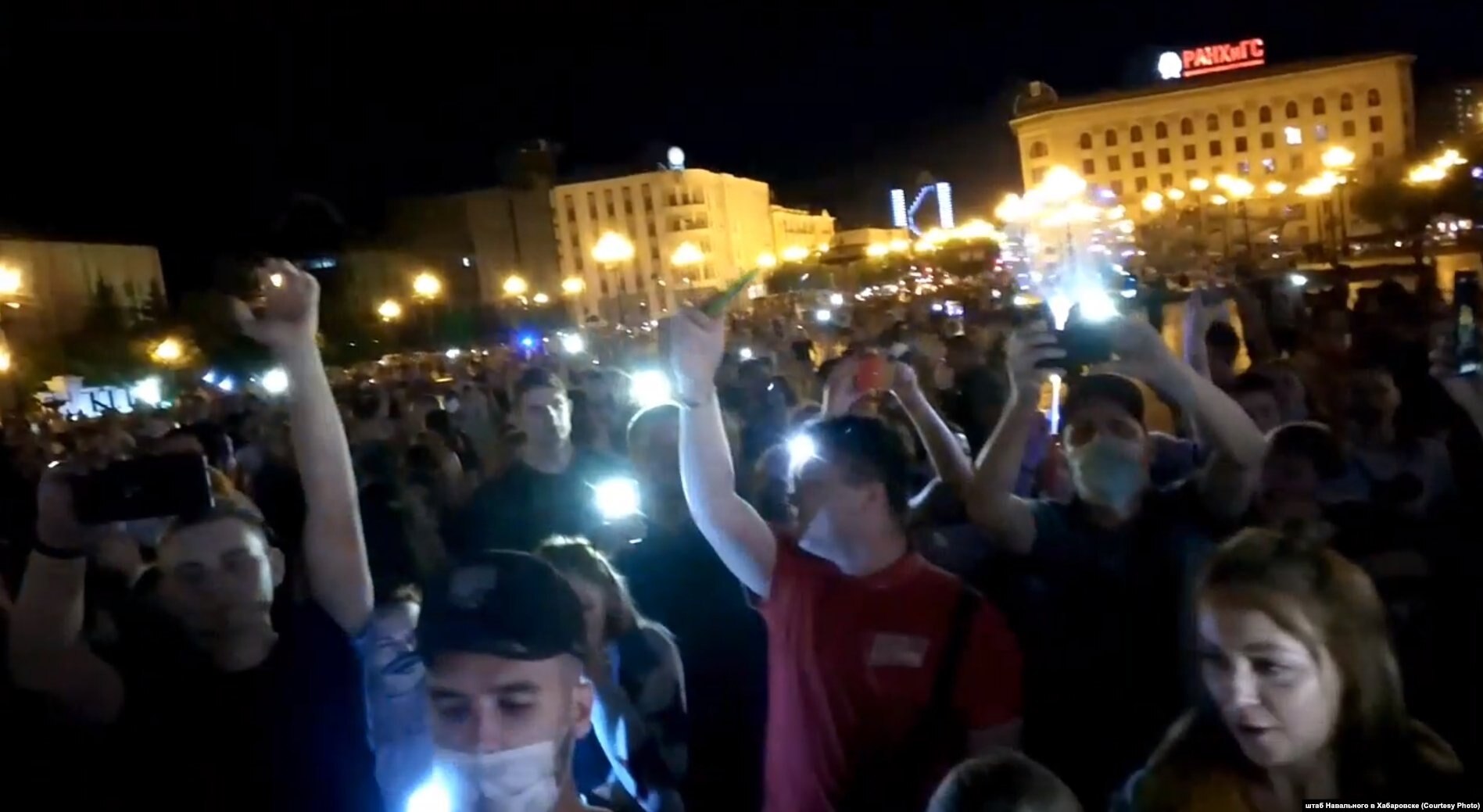 В Николаевске-на-Амуре жители выстроились на набережной с фонариками, так, чтобы получилась гигантская надпись "Свободу", сообщил телеграм-канал Baza.