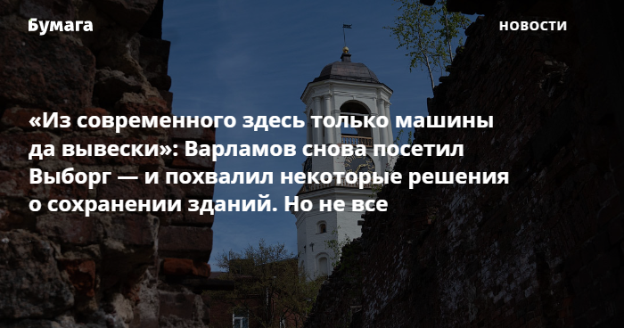 Блогер Илья Варламов снова приехал в Выборг, но, в отличие от предыдущего посещения города, похвалил некоторые решения администрации о сохранении построек. При этом он раскритиковал реконструкцию многих исторических зданий в центре Выборга.