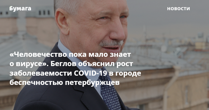 Беглов связал рост заболеваемости коронавирусом в Петербурге с беспечностью горожан