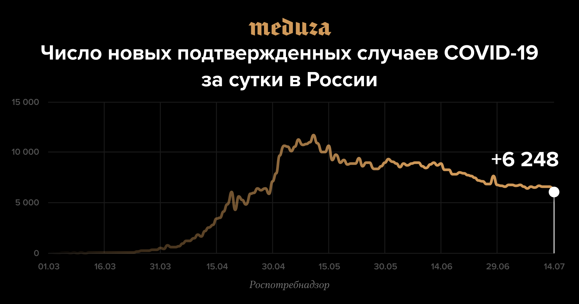 За последние сутки в России зарегистрировали 6248 новых случаев заражения коронавирусом, сообщает оперативный штаб по борьбе с COVID-19. Днем ранее вирус обнаружили у 6537 человек. Общее число заболевших достигло 739 947 человек.