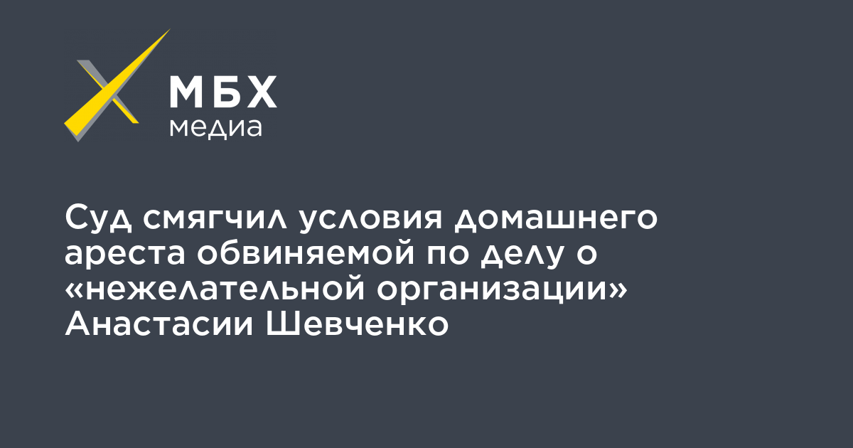 Ленинский районный суд Ростова-на-Дону смягчил условия домашнего ареста обвиняемой по делу о «нежелательной организации» Анастасии Шевченко, с нее сняли запрет на общение с иными лицами. Об этом сообщил «МБХ медиа» координатор «Правозащиты Открытки» Алексей Прянишников.