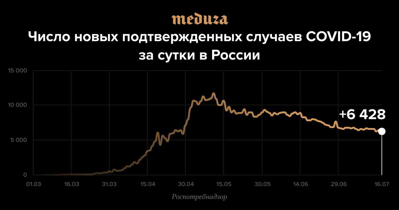 По состоянию на утро 16 июля в России зарегистрированы 6428 новых случаев заражения коронавирусной инфекцией. Общее число инфицированных достигло 752 797 человек, сообщает оперативный штаб по борьбе с вирусом.