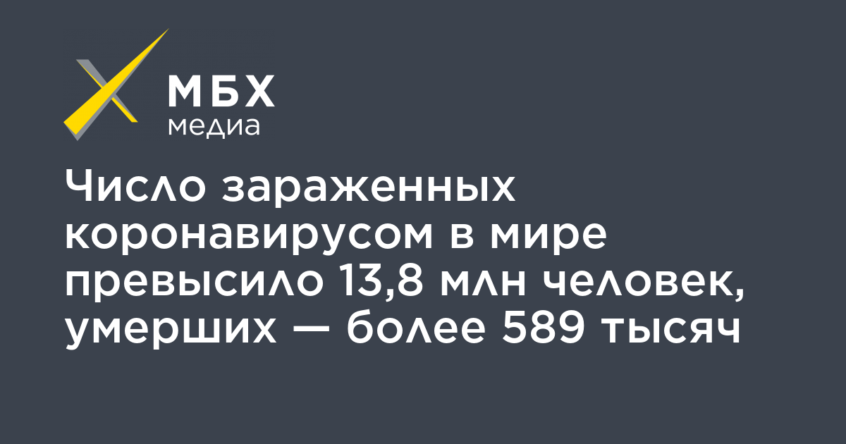 С начала пандемии коронавируса во всем мире инфекцией заразились более 13,8 млн человек, число умерших превысило 589 тысяч, свидетельствуют данные Университета Джонса Хопкинса.