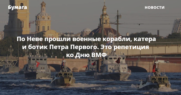 Парад ВМФ состоится 26 июля в Петербурге и Кронштадте. В нем примут участие 46 кораблей, катеров и подводных лодок. 16 июля к Английской набережной пришвартовался корабль «Полтава», реплика военного корабля времен Петра I.