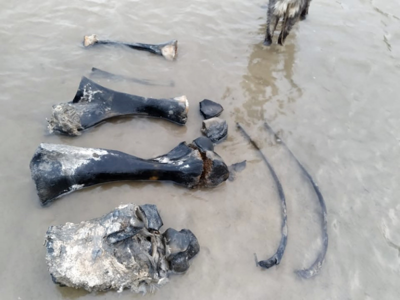 Фрагменты скелета с мягкими тканями вымершего животного лежали на берегу озера. Представлены голова, ребра, а также фрагменты ступней, мяса и шкуры. По предварительным данным, это молодая особь.