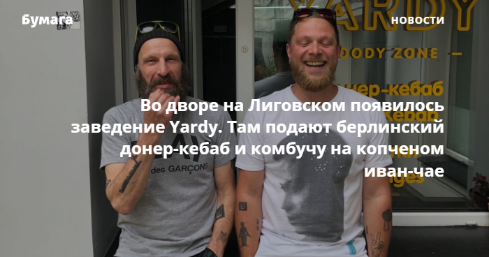 Во дворе-колодце на Лиговском проспекте, 33 открывается заведение Yardy. Это проект барменов Виктора Бочарова (Do Immigration, Peeps) и Радомэса Анискина («Рядом», Roots United), где подают квадратный берлинский донер-кебаб, сообщает «Собака.ru».
