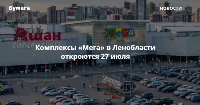 Торговые комплексы «Мега Парнас» и «Мега Дыбенко» возобновят работу 27 июля. Об этом в своем телеграм-канале сообщила администрация Ленинградской области.