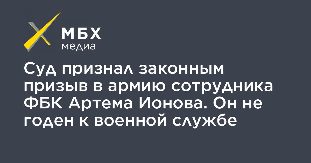 Суд признал законным призыв в армию сотрудника ФБК Артема Ионова. Он не годен к военной службе
