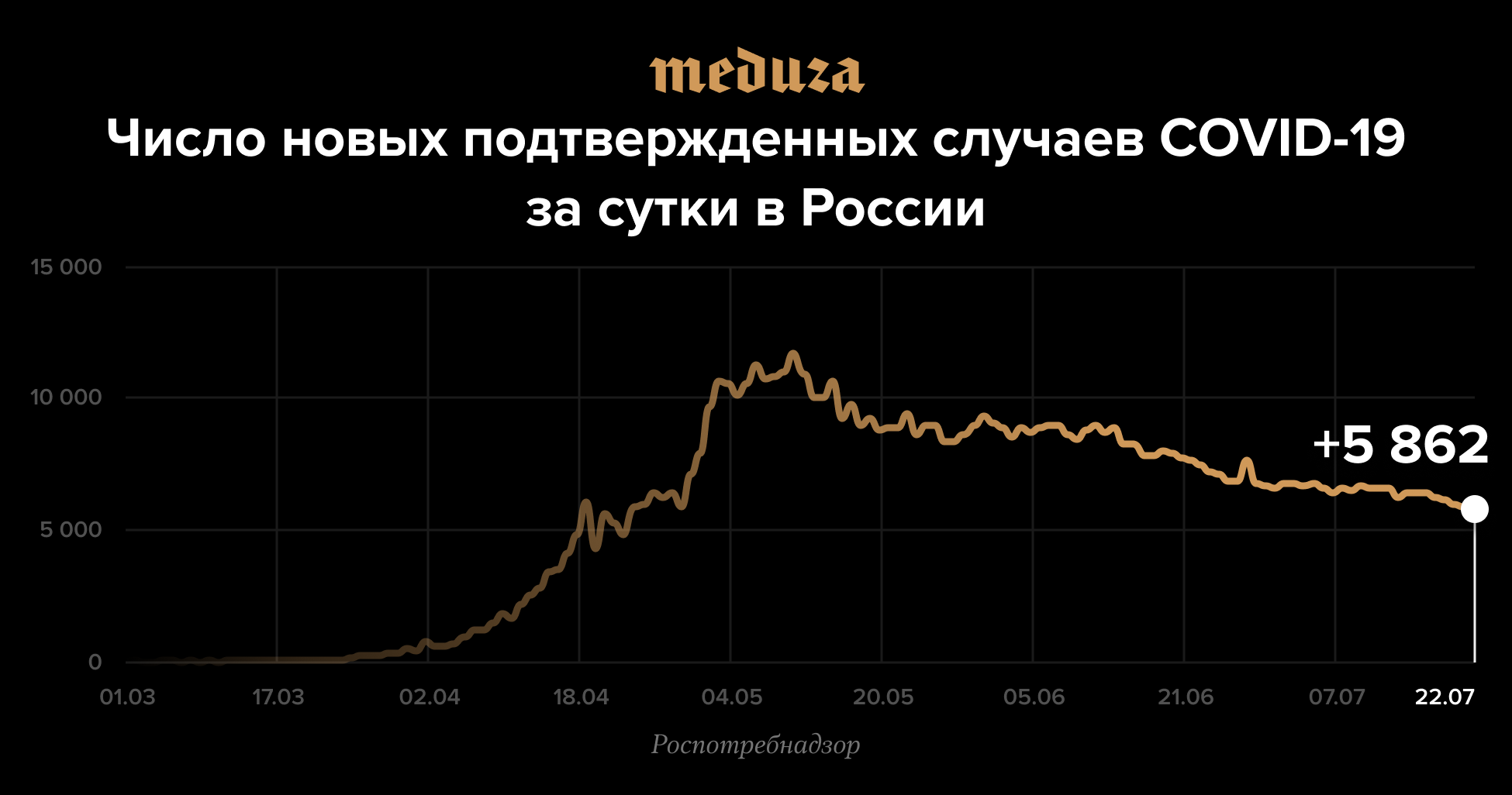 За прошедшие сутки в России зафиксировано 5862 новых случая коронавирусной инфекции, сообщил федеральный оперативный штаб по борьбе с COVID-19. Днем ранее, по официальным данным, было 5842 новых случая. Всего с момента начала распространения коронавируса в России заболели 789 190 человек.