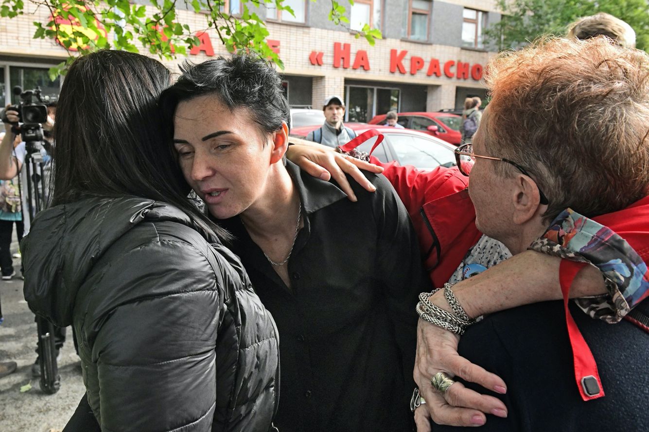 К Екатерине подходят люди из группы поддержки Дмитриева, поздравляют и обнимают ее. «До ноября доживем» — с улыбкой обращается к ней женщина с седыми волосами. «Ну естественно, естественно», — радостно говорит дочь историка.