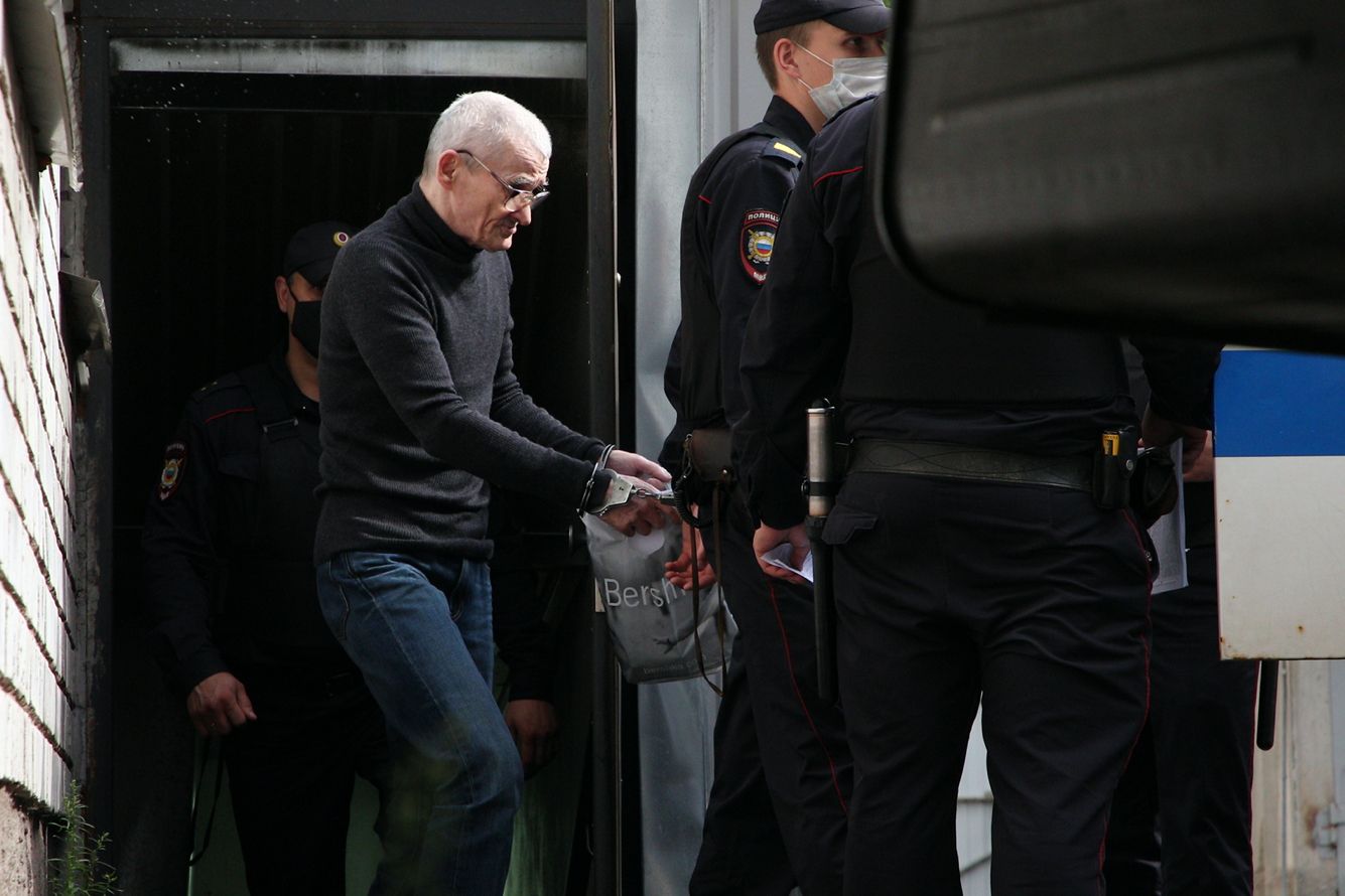 Here’s historian Yuri Dmitriev being escorted from court after his sentencing