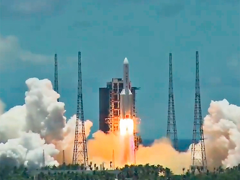 Как сообщает агентство Xinhua, тяжелая ракета-носитель "Чанчжэн-5" с марсианскими аппаратами на борту стартовала с космодрома Вэньчан на острове Хайнань 7 часов 41 минуту по московскому времени. Примерно через 36 минут полезная нагрузка была выведена на околоземную орбиту, откуда аппараты в скором времени направятся к Марсу.