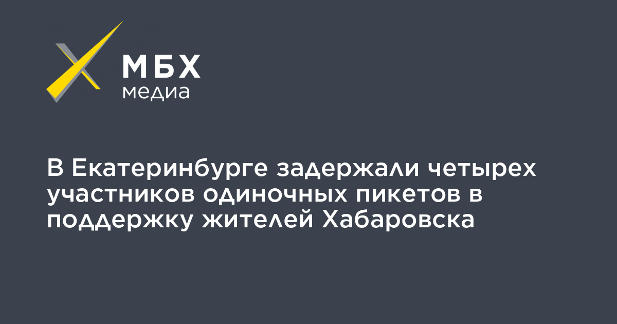 В Екатеринбурге задержали четырех участников одиночных пикетов в поддержку жителей Хабаровска. Об этом «МБХ медиа» рассказал координатор местного отделения «Открытой России» Владислав Постников.