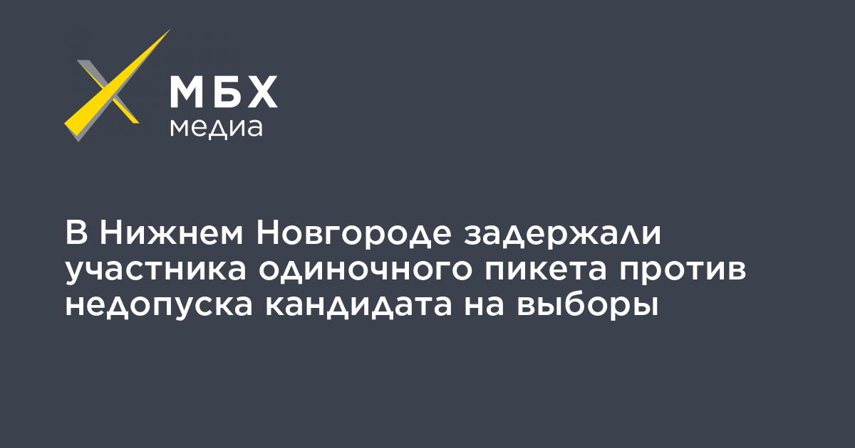 В Нижнем Новгороде задержали участника одиночного пикета против недопуска кандидата от партии «Яблоко» на выборы в городскую думу. Об этом сообщает «ОВД-инфо».