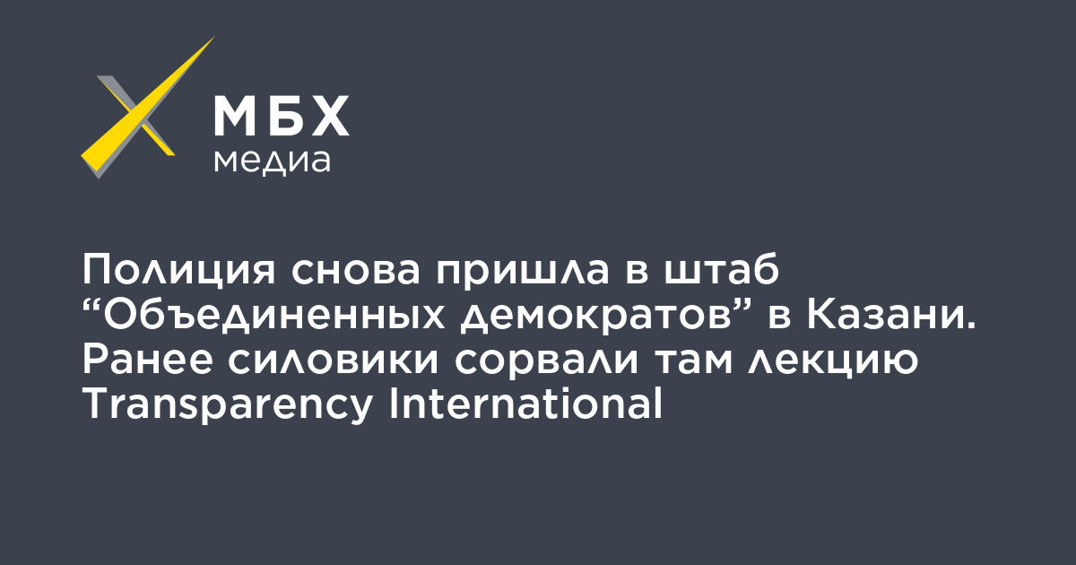 Полиция снова пришла в штаб «Объединенных демократов» в Казани после того, как два дня назад силовики сорвали там лекцию главы Transparency International в Екатеринбурге Екатерины Петровой. Об этом сообщил «МБХ медиа» юрист Андрей Давыдов.