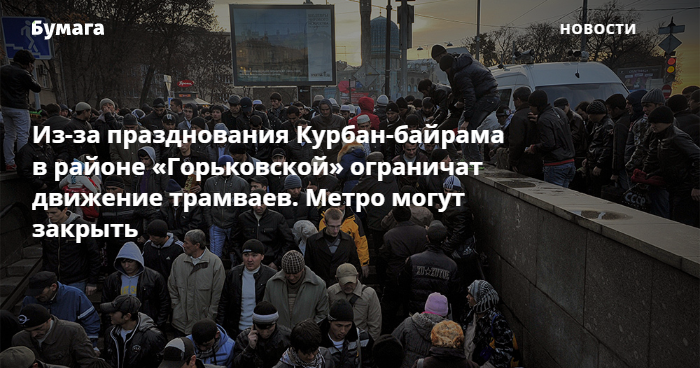 В Петербурге 31 июля пройдет празднование мусульманского праздника Курбан-байрам. В районе «Горьковской» ограничат движение трамваев. Метро, возможно, закроют.