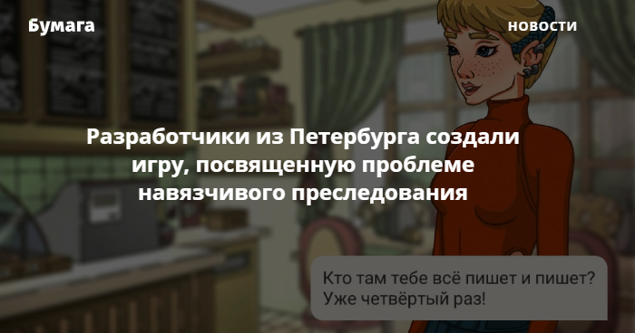 «Бумага» публиковала истории жертв сталкеров с комментариями юристов. Ранее в Петербурге также запустили игру «Гэбня», в которой рассказывается, с какими проблемами можно столкнуться в отношениях и как с ними справиться.