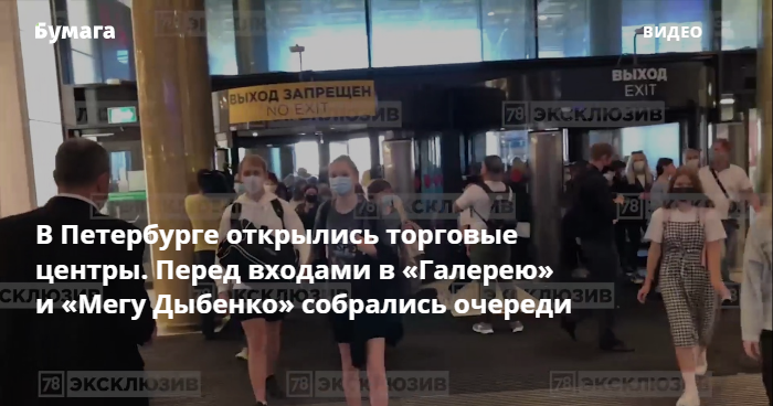 Утром 27 июля в Петербурге открылись торговые центры. Перед запуском «Галереи» и «Меги Дыбенко» там собрались очереди. Внимание на это обратил 78.ru.