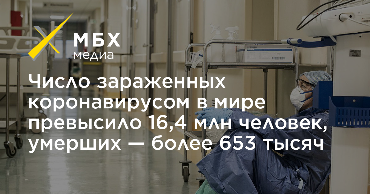 С начала пандемии коронавируса во всем мире инфекцией заразились более 16,4 млн человек, число умерших превысило 653 тысячи, свидетельствуют данные Университета Джонса Хопкинса.