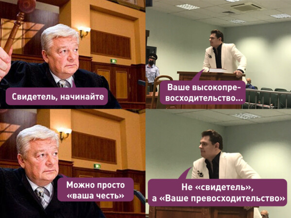 Этот момент сразу же стал темой для обсуждения, тем более, что в сеть попали небольшие отрывки и фото с заседания. На них видно, как Понасенков в белом пиджаке и своей книгой в руках довольно театрализованно выступал в суде, периодически вступая в перепалки с Соколовым, а судья периодически просила не превращать процесс «непонятно во что».