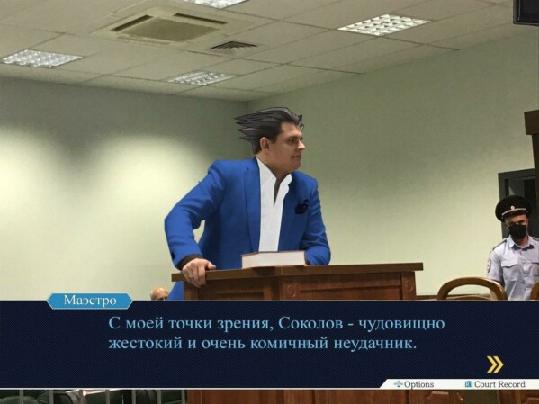 Соколов: Вы говорите, что травли не было. Но мне лично присылали угрозы, что моё тело будет болтаться в холодной воде. Это всё делали ваши подельники. Неоднократно в этих высказываниях вас называли «Маэстро». Это же вас называют Маэстро? Так вот, мне говорили: «Ты заплатишь за Маэстро». Вы смеётесь? Два года вы издевались над нами, травили нас. Вы не знаете ничего об этой травле?